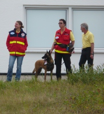 dem Unterordnungsteil durchsuchte jeder Hund innerhalb von 30 Minuten ein Gebiet von 75.000m² und entdeckte dort je 2 vermisste Personen. Für diese Leistung bekamen sie die Einsatzfähigkeitprüfung und dürfen nun in reale Einsätze gehen.