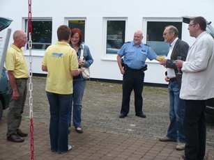 Geburtstagsüberraschung Die Mitglieder überraschten Volker mit einem originellen Geschenk, einem Grilleimer. Nicht ganz uneigennützig, wie man sieht.